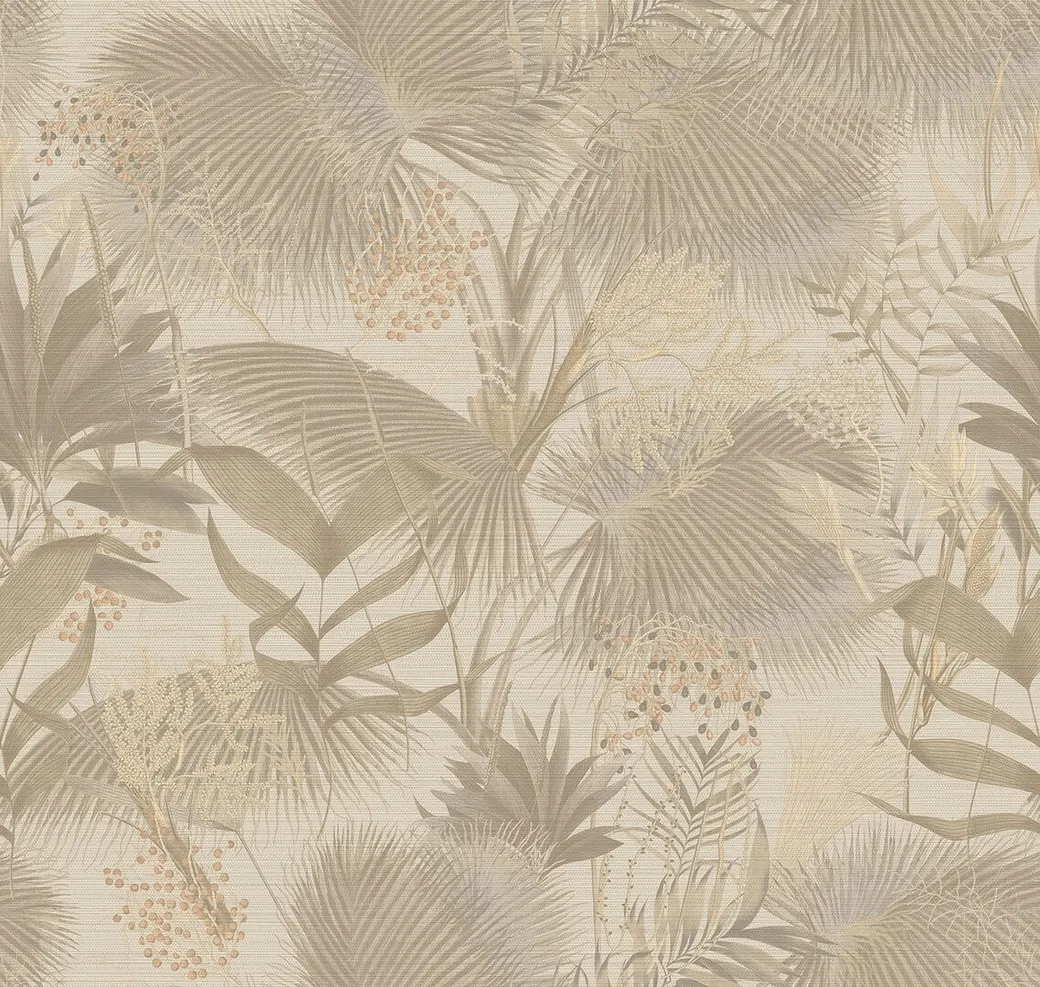 Обои Sirpi арт-50501 из коллекции Straw предназначены для создания стильного интерьера. Они выполнены в светлом бежевом цвете и имеют рисунок с изображением растений, что делает их идеальными для различных помещений, включая гостиные и спальни.
