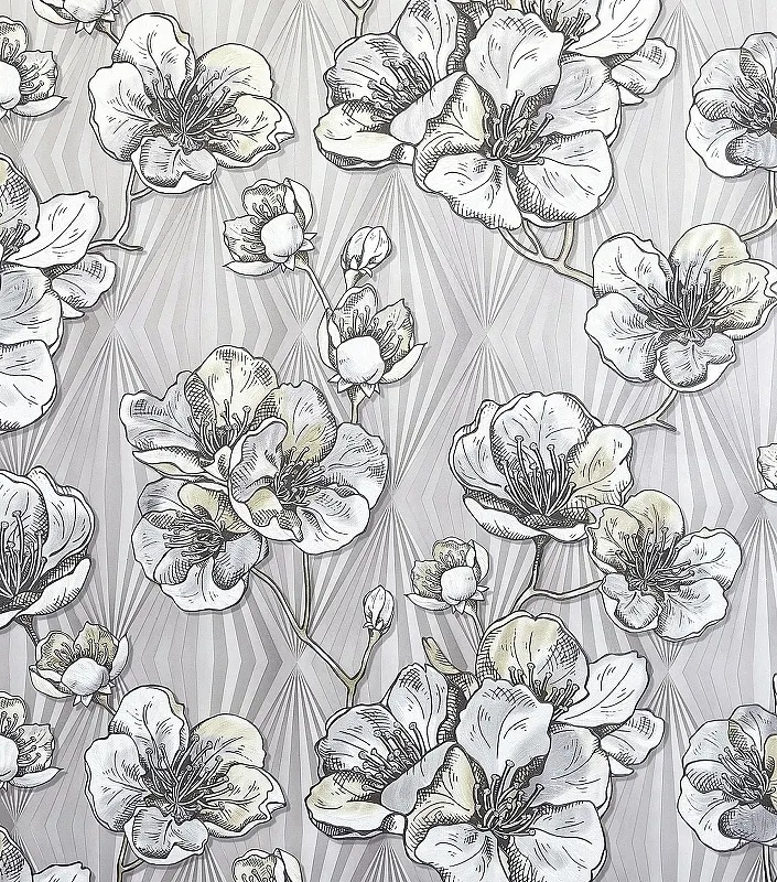 Обои Solo Anemone 168544-26 Винил на флизелине (1,06*10,05) Серый/Бежевый, Геометрия/Цветы