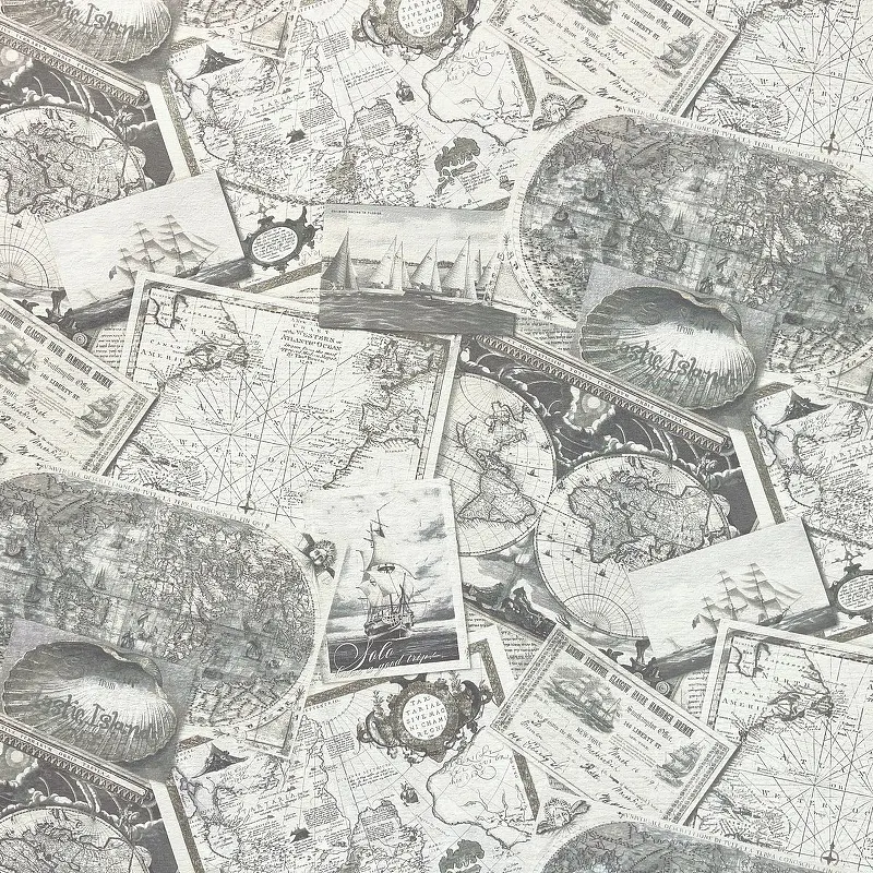 - Универсальный дизайн: Эти обои с рисунком карт в серо-белых тонах легко впишутся в любой интерьер, добавляя стиль и изысканность.