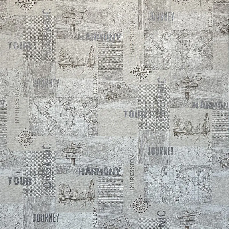 Обои Solo Voyage 168414-13 Винил на флизелине (1,06*10) Бежевый, Геометрия/Карты/Надписи