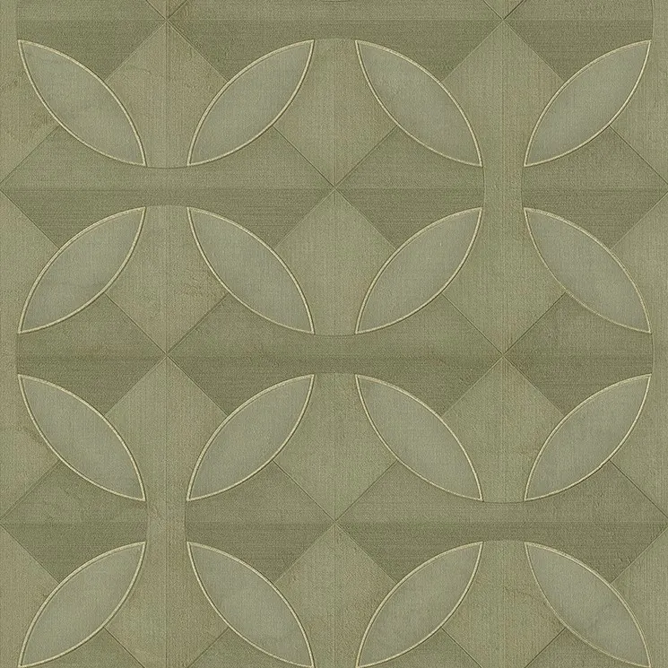 Обои ME80031 от Studio Italia Collection представляют собой виниловые рулонные обои на флизелине. Эти обои выполнены в успокаивающих зеленых оттенках с геометрическим узором, что делает их подходящими для современных интерьеров.
