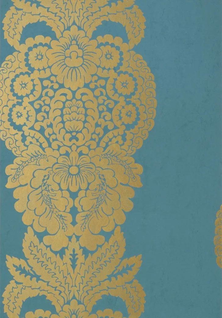 Обои T89133 от бренда Thibaut представляют собой флизелиновое настенное покрытие из коллекции Damask Resource 4. Сочетание золотого и синего цветов делает их подходящими для различных интерьеров, от классических до современных.