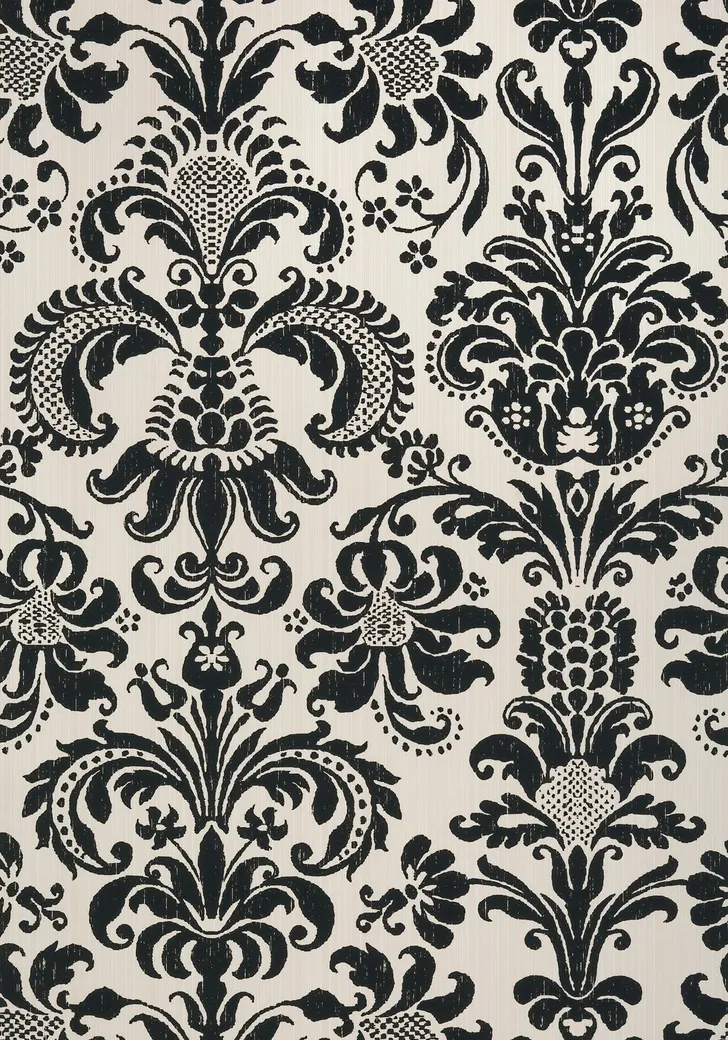 Обои T89167 от производителя Thibaut — это классическое настенное покрытие из коллекции Damask Resource 4. Они выполнены в двух цветах: белом и черном, что позволяет им гармонично вписаться в различные интерьеры, включая гостиную, спальню и кабинет.