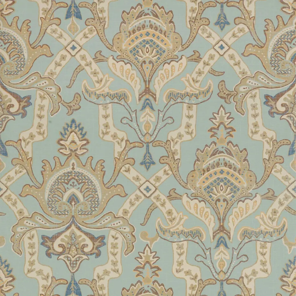 Обои Thibaut Menswear арт-839-T-1046 — это рулонные бумажные обои, предназначенные для использования в интерьере. Их восточный рисунок и гармоничное сочетание голубого с желтыми и оранжевыми оттенками создают уникальную атмосферу в помещениях.