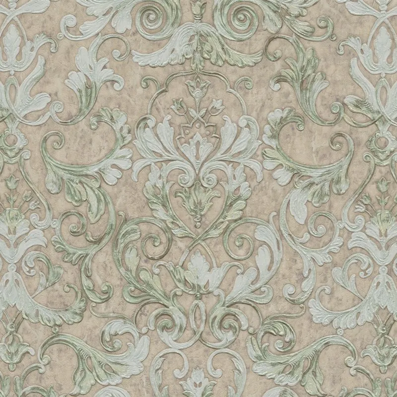 Обои Valentin Yudashkin Home Fashion 4 арт-85011 представляют собой высококачественные виниловые обои на флизелине, предназначенные для создания роскошных интерьеров. С классическим дамасским узором и утонченной палитрой зеленого и коричневого, они идеально подходят для спальни, гостиной и кабинета.