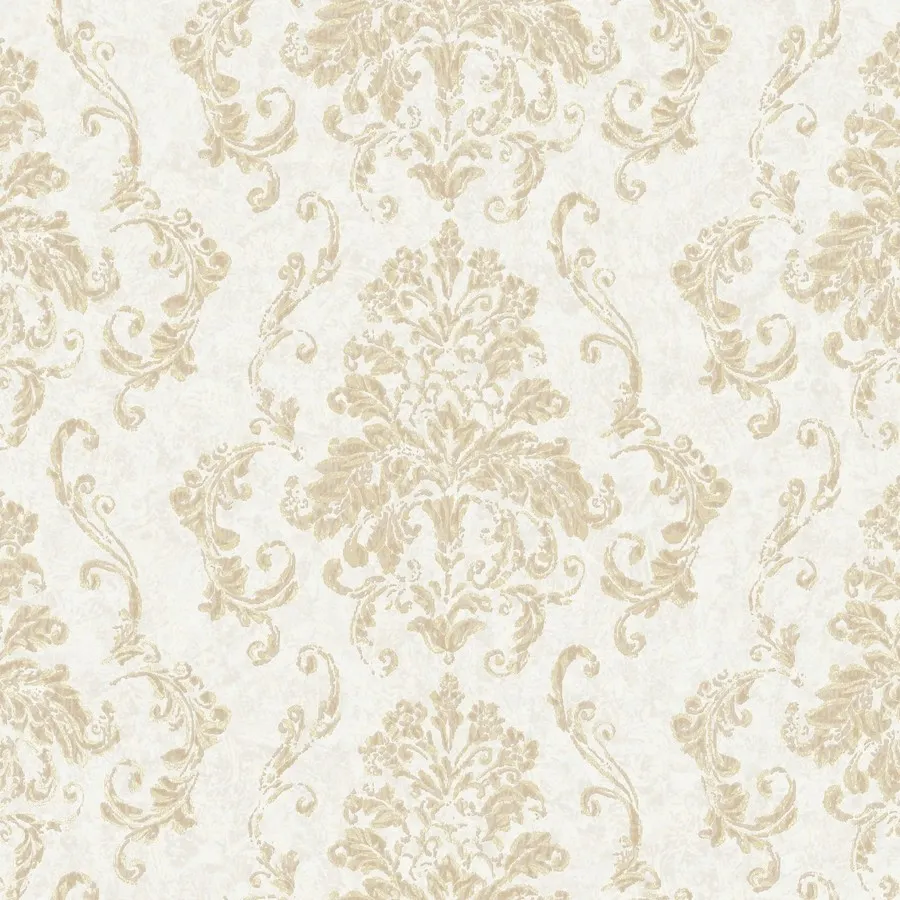Обои Wall Up Estetica арт-655476 представляют собой виниловые рулонные обои на флизелине. Они выполнены в светлом бежевом цвете и украшены классическим дамасским узором, что делает их универсальными для различных интерьеров.