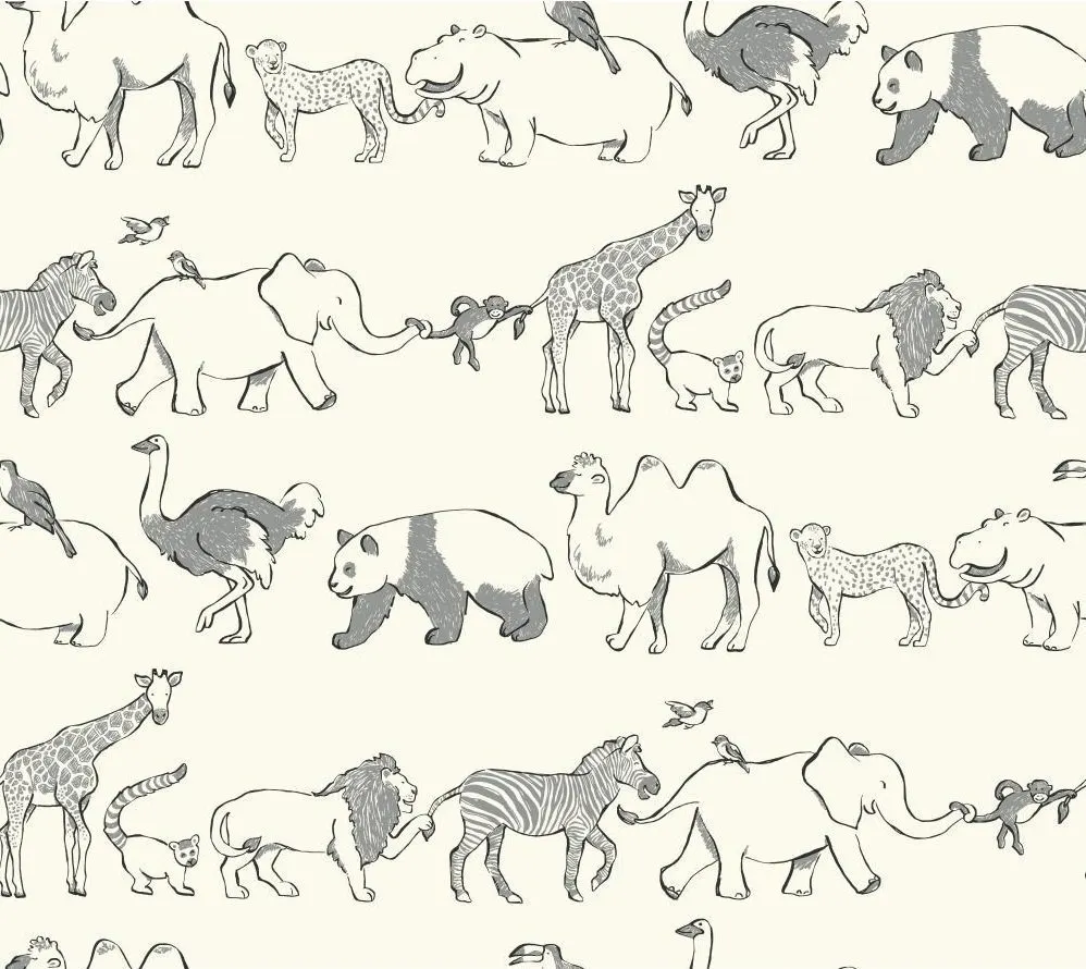 Обои WK6724 от производителя Waverly относятся к коллекции Waverly Kids. Эти бумажные обои предназначены для детских комнат и имеют яркий, тематический рисунок с изображениями животных. Обои доступны в двух цветах: белом и черно-белом, что позволяет создать светлую и просторную атмосферу.