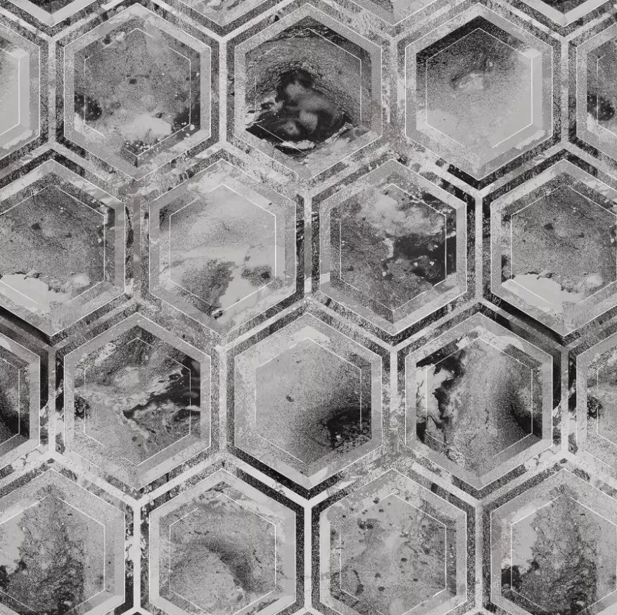 Обои Wiganford by Solo Lunman ER1404 Винил на флизелине (1,06*10,05) Серый/Черный, Геометрия/Мрамор