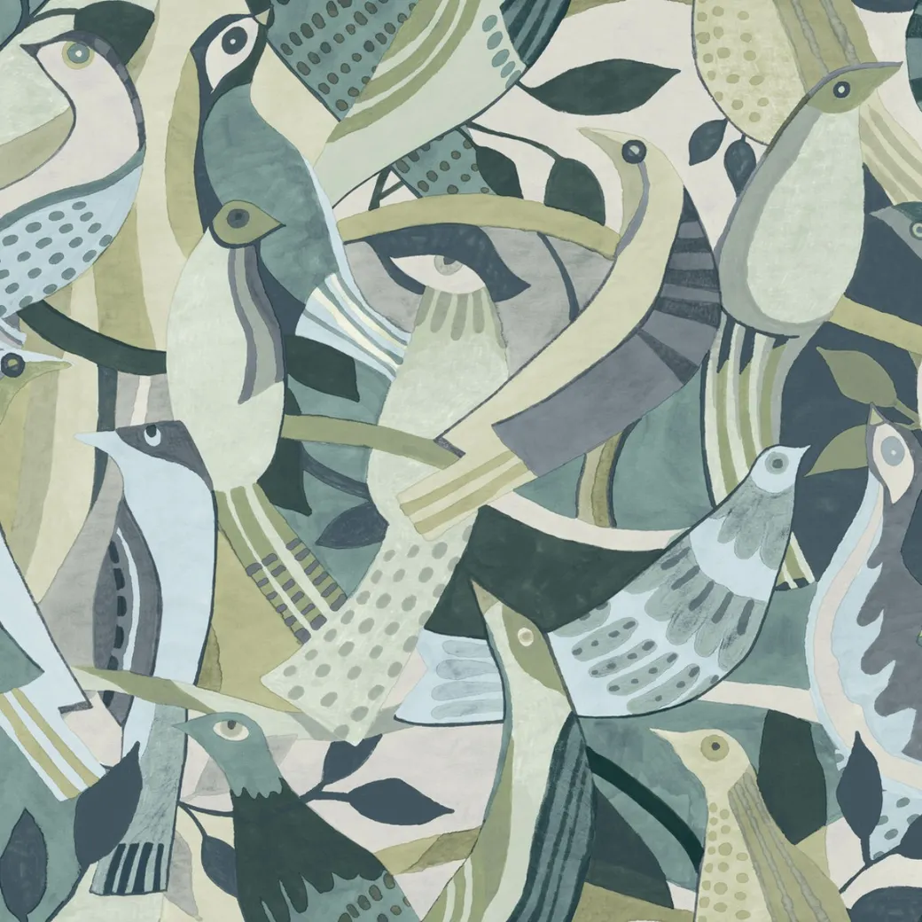 - Рисунок: Абстрактный, с изображениями птиц и бабочек