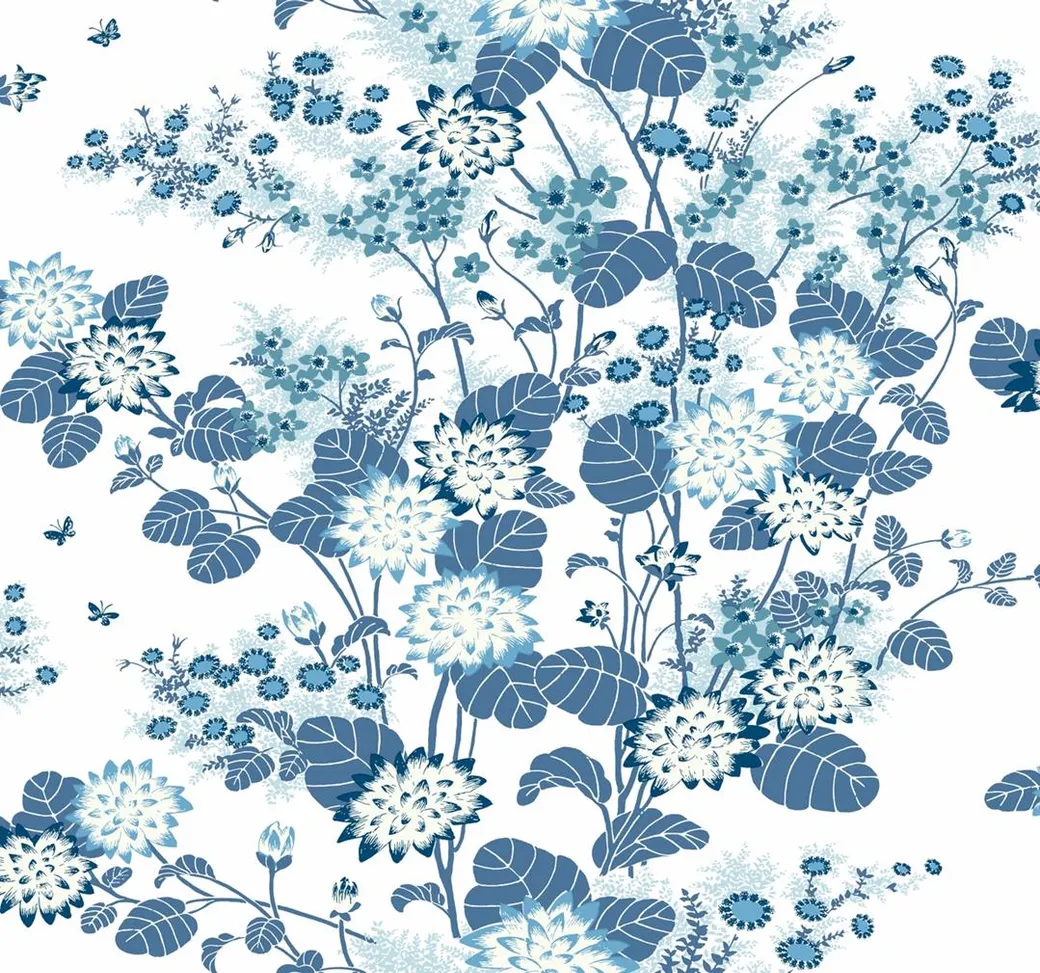 Обои FB1408 от производителя York из коллекции Florence Broadhurst представляют собой рулонные бумажные обои с цветочным рисунком. Они идеально подойдут для различных помещений, включая кухню, спальню и гостиную, благодаря гармоничному сочетанию голубых и синих оттенков с желтыми и оранжевыми акцентами.