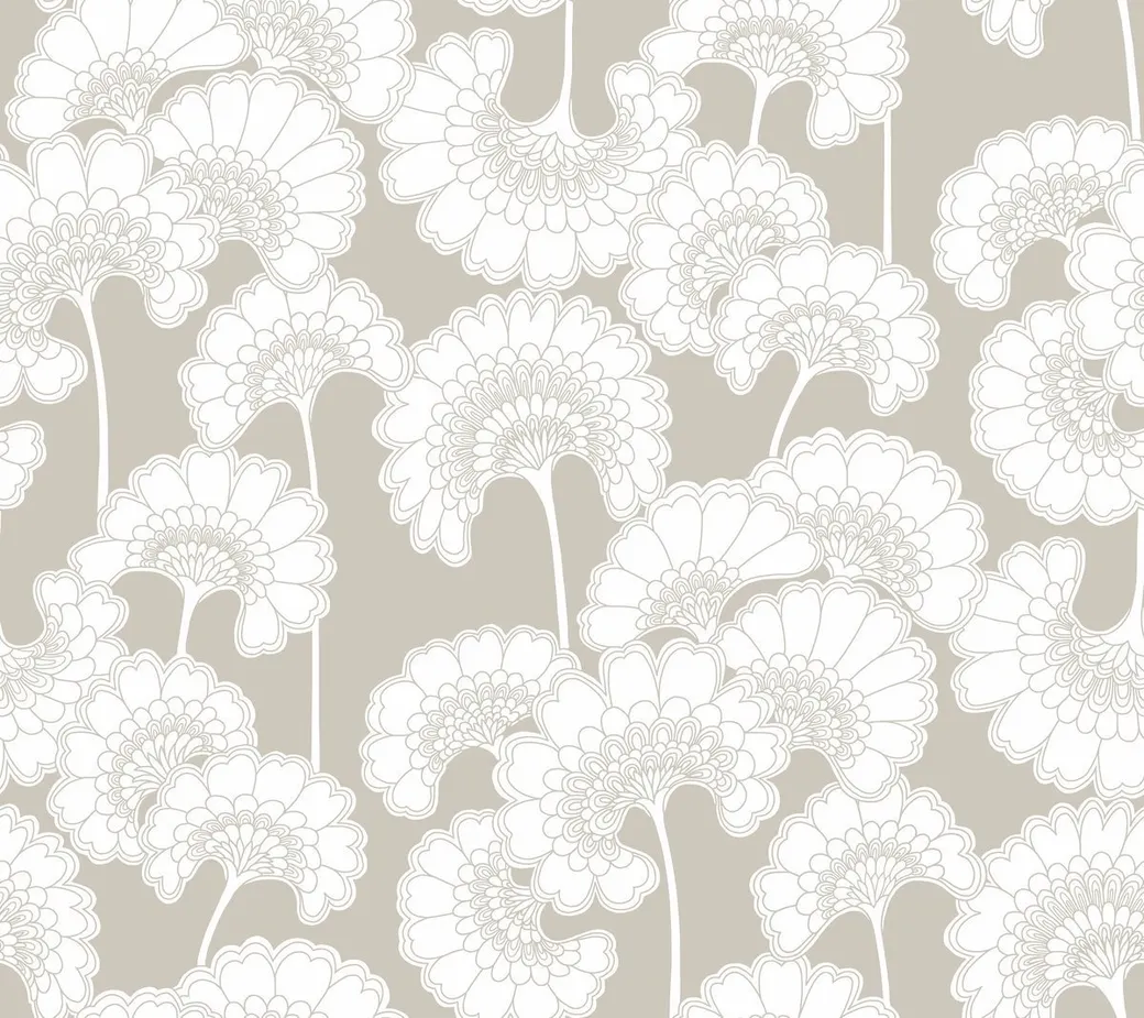 Обои FB1463 от американского производителя York из коллекции Florence Broadhurst предлагают стильное и универсальное решение для оформления интерьера. Их светлый бежевый цвет и цветочный рисунок подходят для различных помещений, таких как гостиная, кухня и спальня.