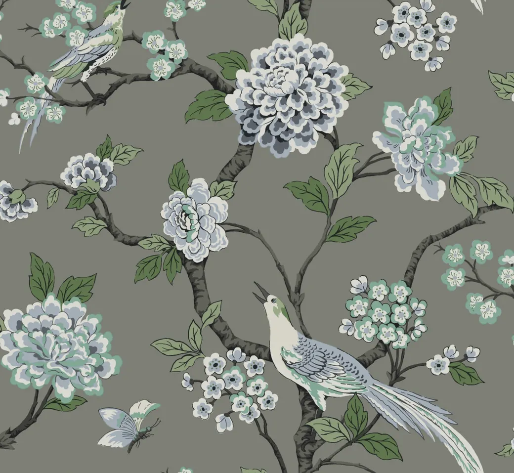 Обои GR5933 от компании York из коллекции Grandmillennial предназначены для создания стильного интерьера. Эти бумажные обои имеют серый фон с изображением цветов и птиц, что делает их универсальными для различных стилей оформления.