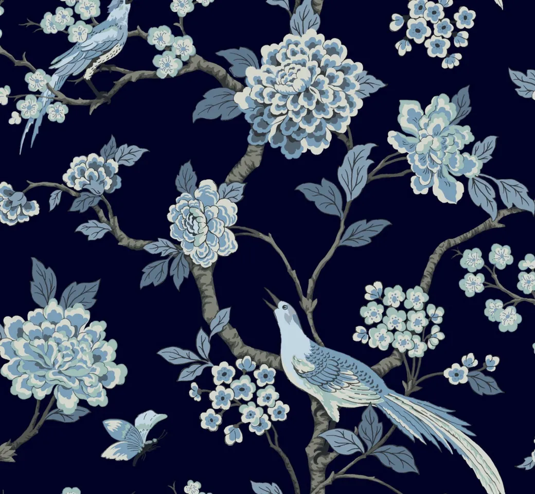 Обои GR5934 от производителя York из коллекции Grandmillennial предназначены для создания стильного интерьера. Эти бумажные обои имеют яркий синий цвет с рисунком, включающим цветы и птицы, что позволяет легко вписать их в различные дизайнерские решения.