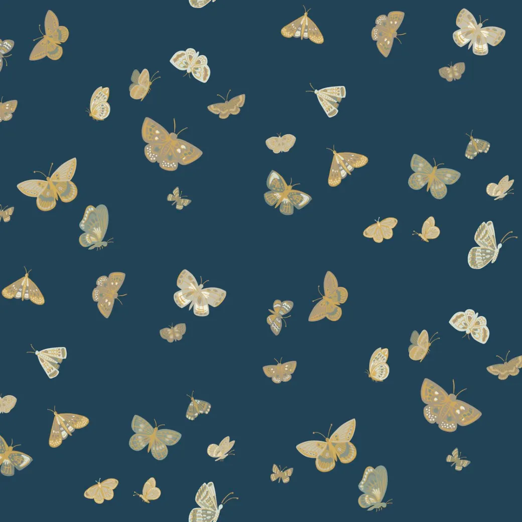 Обои RF7415 от компании York, коллекция Rifle Paper Co 3rd Edition, предназначены для создания стильного интерьера в современных и классических помещениях. Эти флизелиновые обои имеют глубокий синий цвет с рисунком бабочек и насекомых, что добавляет уникальности и изысканности.