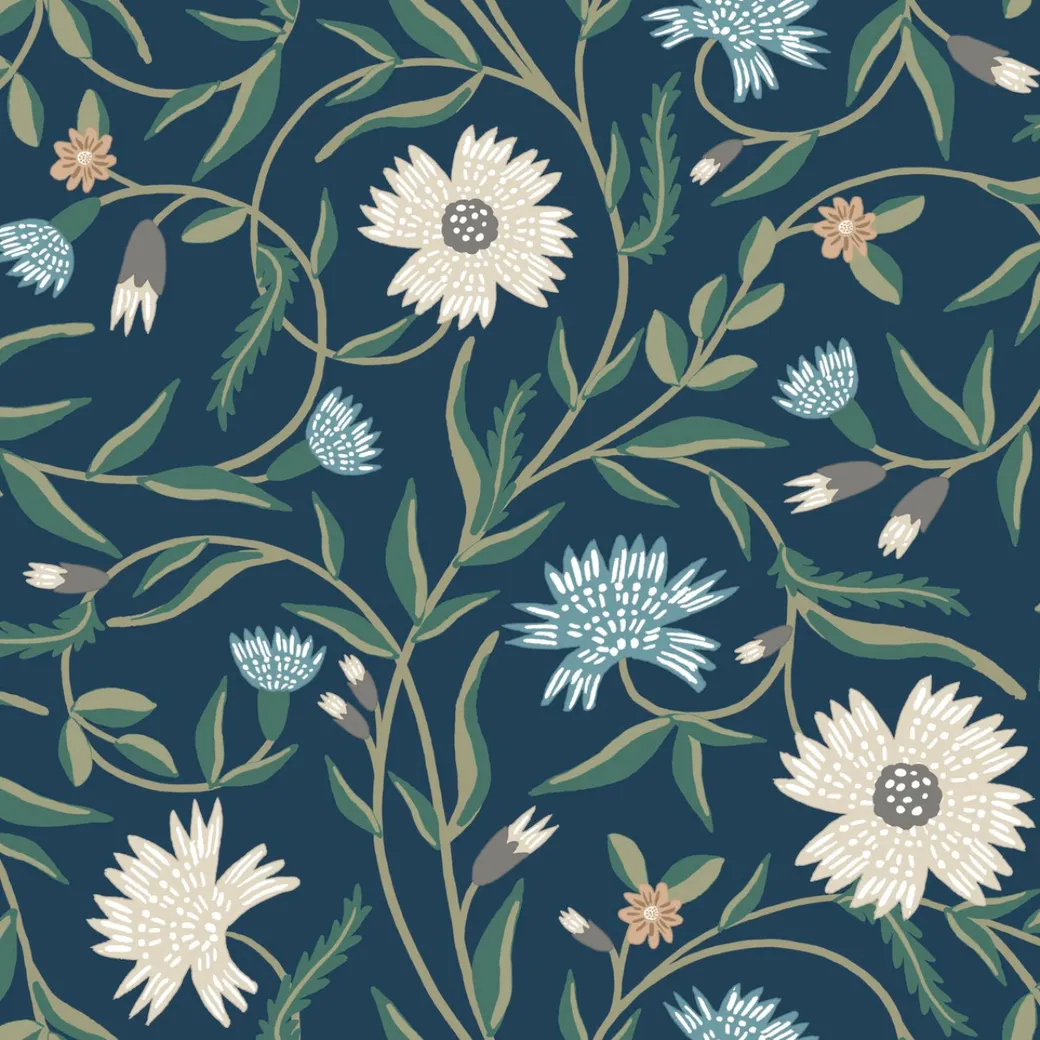 Обои RF7435 от производителя York представляют собой высококачественное настенное покрытие, выполненное в современном английском стиле. Эти флизелиновые обои с цветочным рисунком в богатых синих оттенках подходят для различных помещений, включая спальни и гостиные.