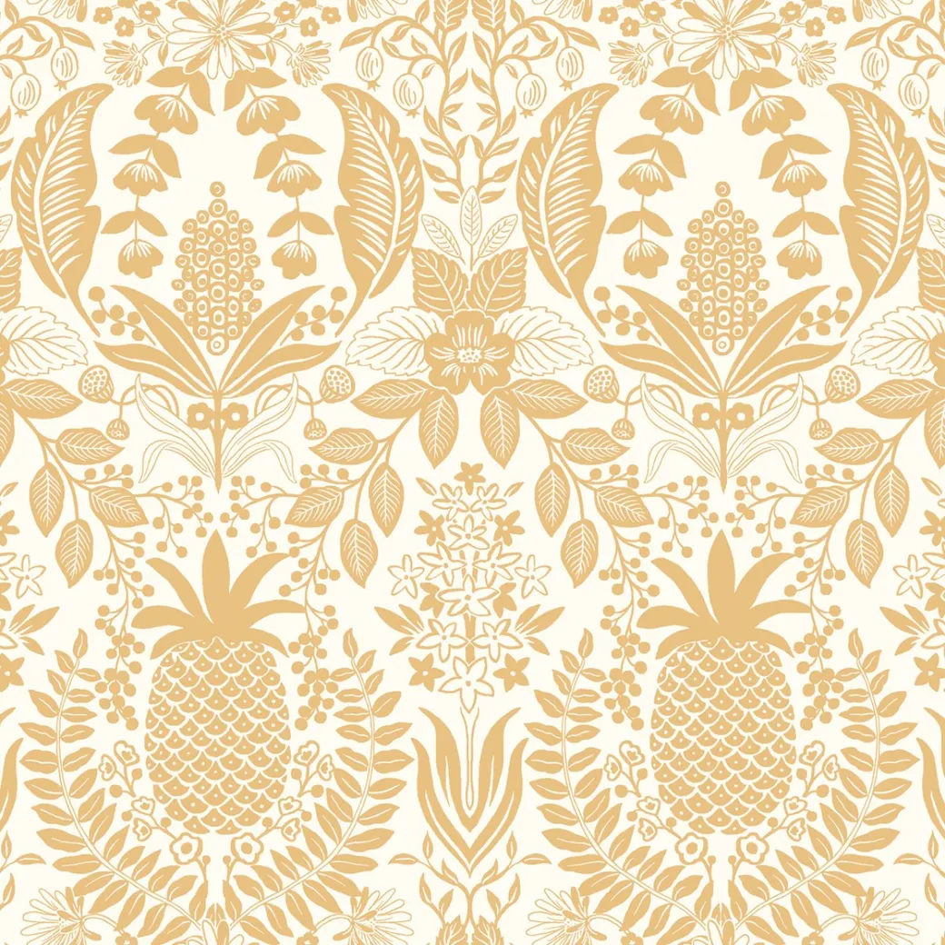Обои RF7482 от производителя York из коллекции Rifle Paper Co 3rd Edition представляют собой флизелиновое покрытие с рисунком вазонов, содержащим фрукты и овощи. Эти обои имеют золотой цвет, что делает их подходящими для создания роскошного интерьера.
