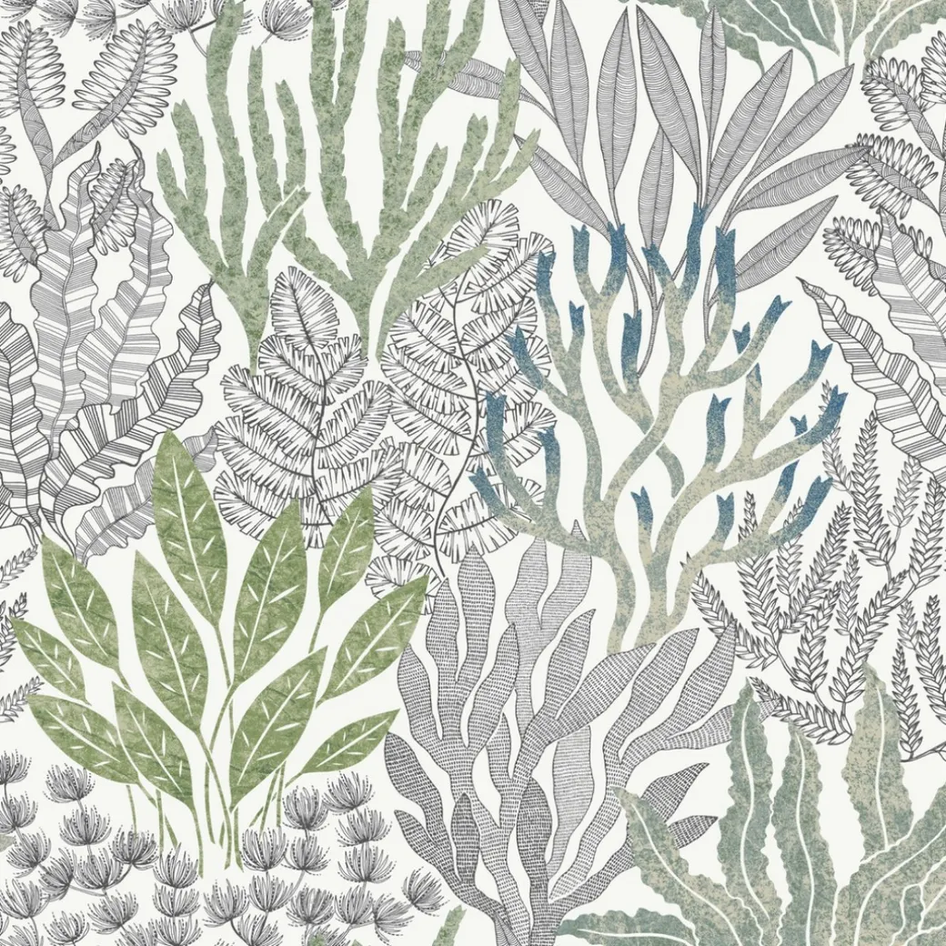 Обои York Toiles Resource Library арт-RT7803 представляют собой качественное настенное покрытие, созданное с использованием флизелиновой основы. Они отличаются стильным растительным рисунком и гармоничным сочетанием зеленого и черно-белого цветов, что позволяет создать уютную атмосферу в различных интерьерах.