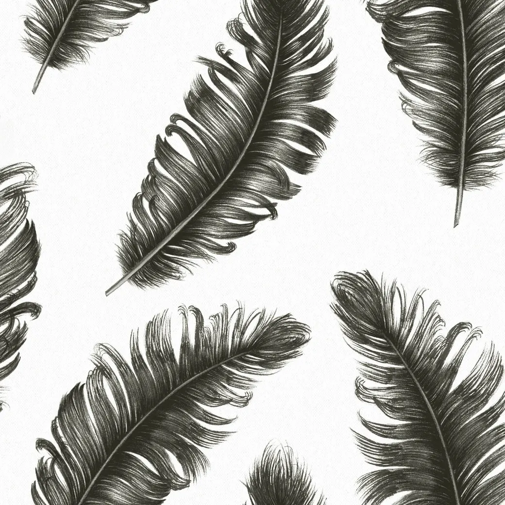 - Универсальный дизайн: Подходит для любых интерьеров благодаря комбинации белого и черного цветов и стильному рисунку "Перья".