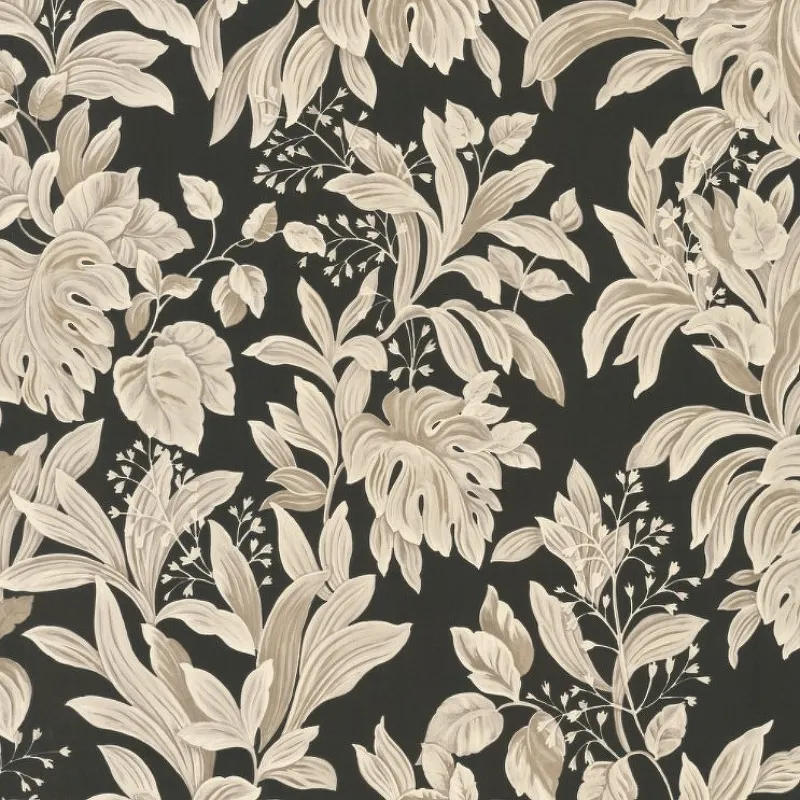 Обои Zambaiti Parati Trussardi VI 46047 Винил на флизелине (1,06*10,05) Черный/Бежевый, Листья/Цветы