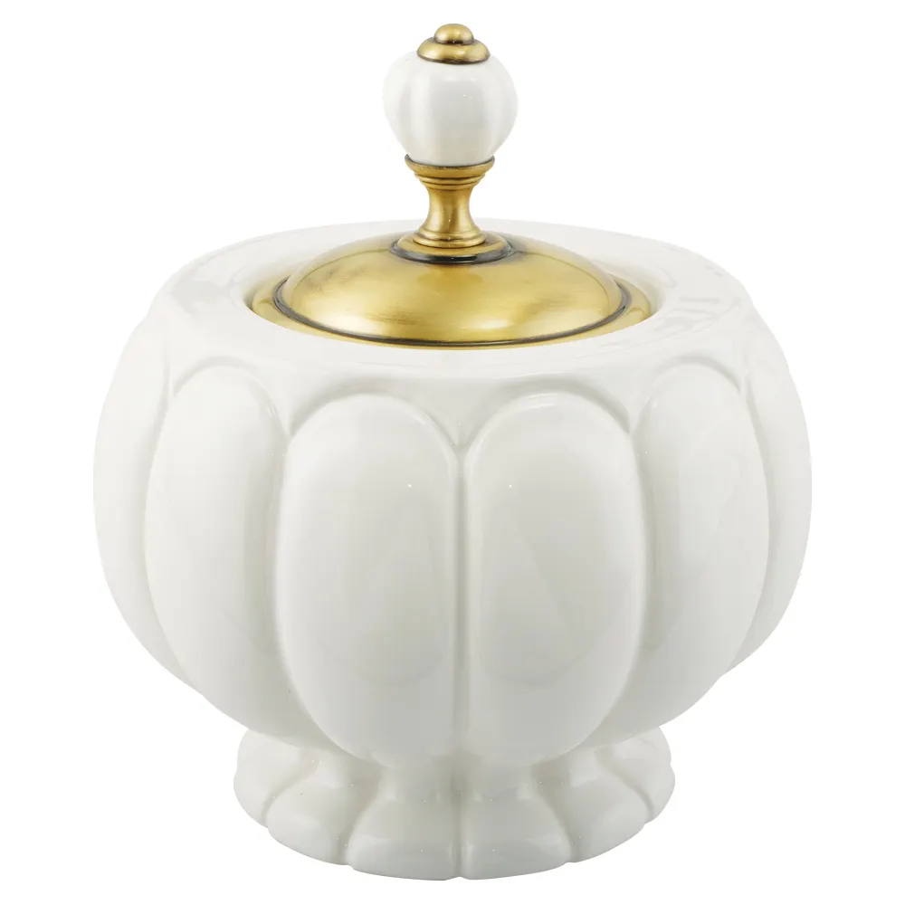 OLIVIA Баночка, H18xD16 см, керамика белая, бронза арт-17418