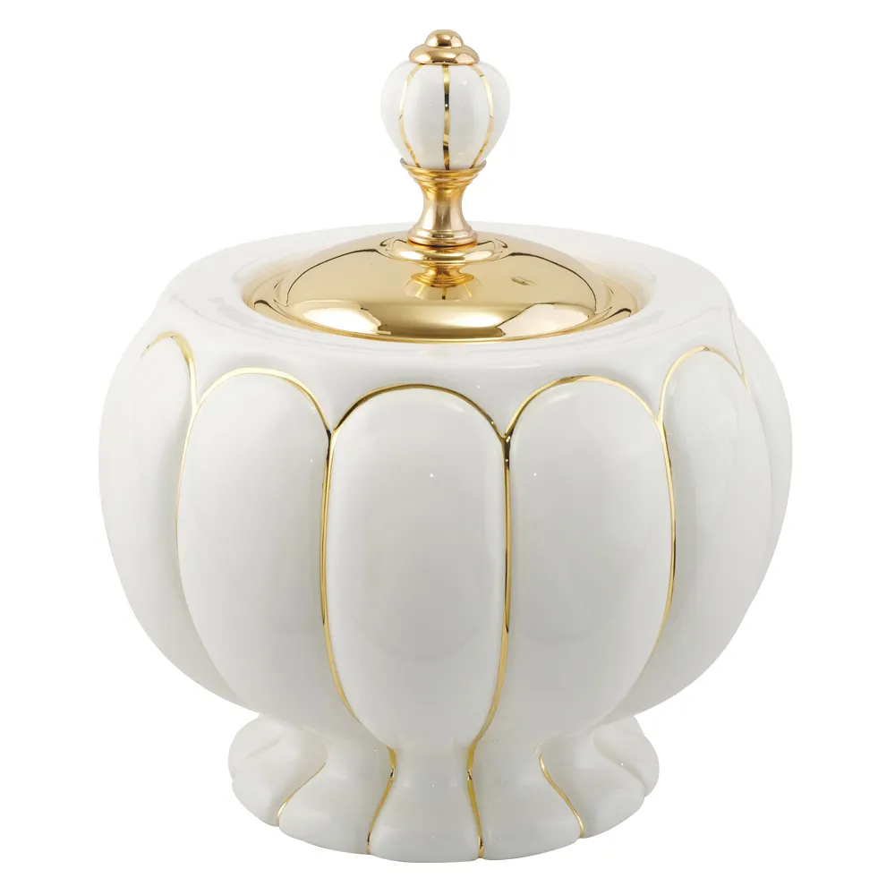 OLIVIA Баночка, h18xD16 см, керамика белая с золотым декором, золото арт-17511