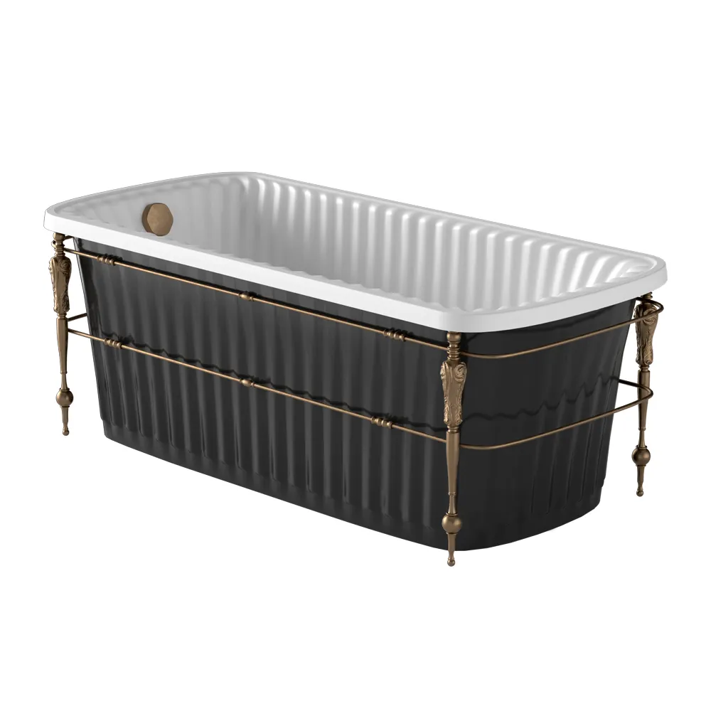 OLIVIA CONSOLE Ванна 174x83хH66 см. белая, панель черная, консоль, слив/перелив бронза арт-24381