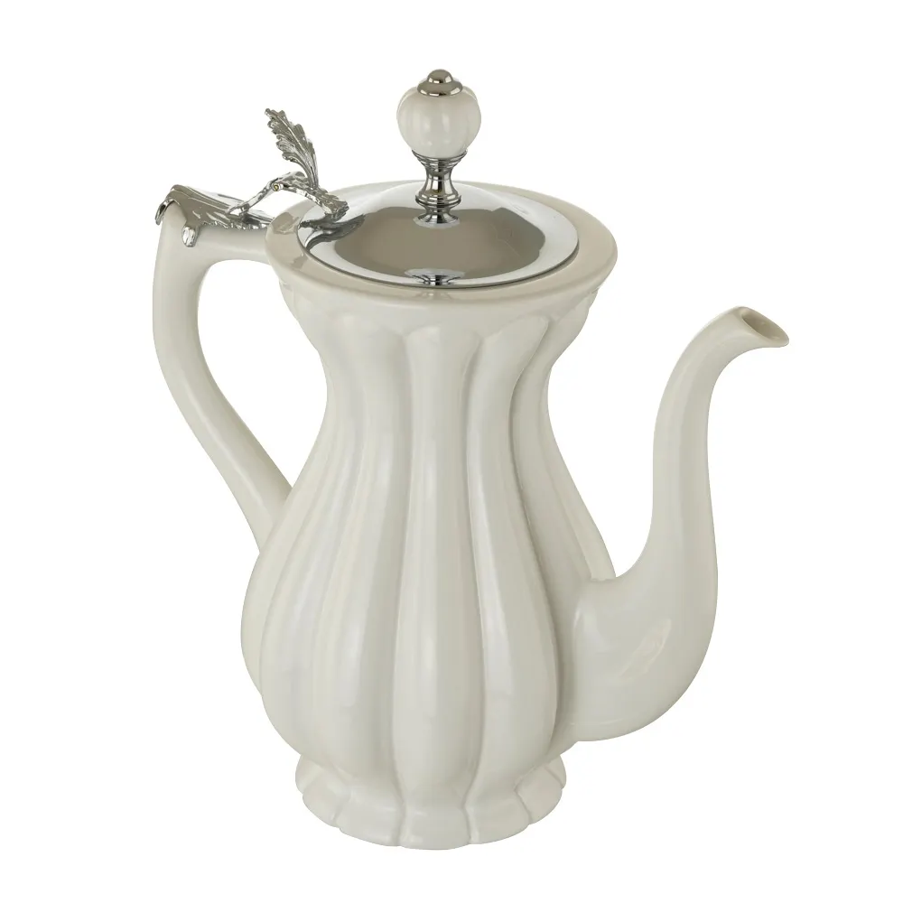 OLIVIA Кувшин керамика, бел/крышка хром арт-24924