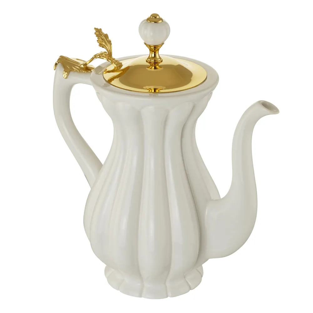 OLIVIA Кувшин керамика, бел/крышка золото арт-24923