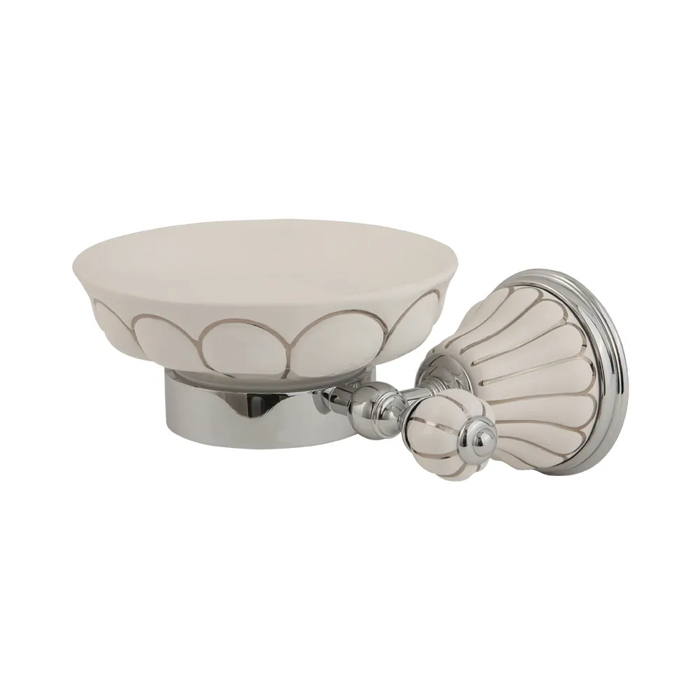 OLIVIA Mыльница настенная, керамика белая с декором платина, хром арт-17539