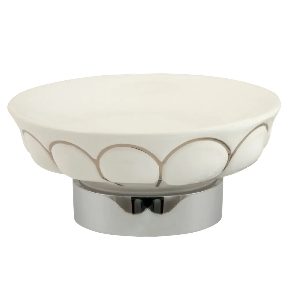 OLIVIA Mыльница настольная, керамика белая с декором платина, хром арт-17540