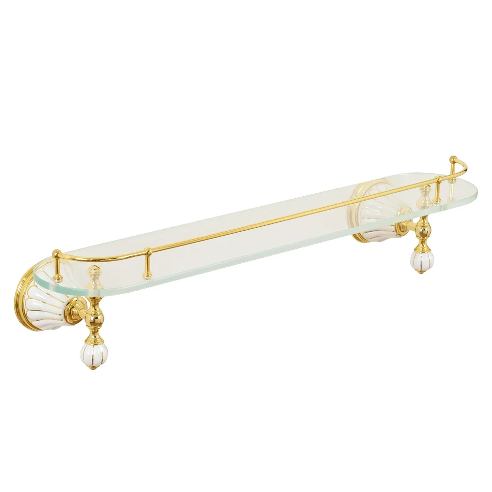 OLIVIA Полка c галереей, L60 см, стекло/керамика белая с золотым декором, золото арт-17526