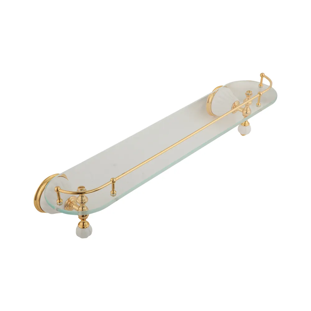 OLIVIA Полка c галереей, L60 см, стекло/керамика белая, золото арт-17464