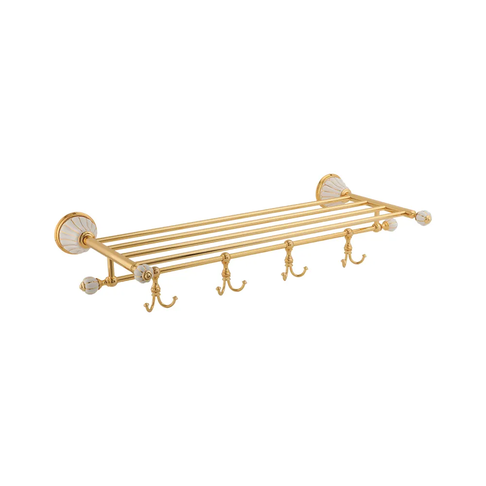 OLIVIA Полка-решетка для полотенец с 4-мя крючками, L68 см, керамика белая с золотым деко арт-17527