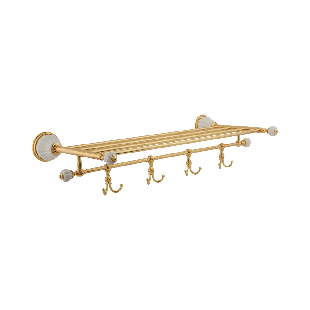 OLIVIA Полка-решетка для полотенец с 4-мя крючками, L68 см, керамика белая, золото арт-17465