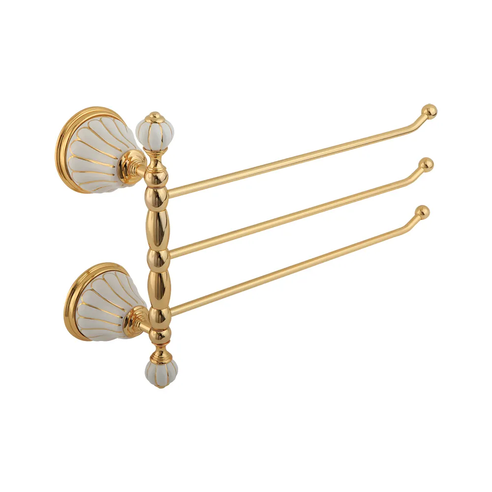 OLIVIA Полотенцедержатель тройной поворотный, L37 cм, керамика белая с золотым декором, золото арт-17529