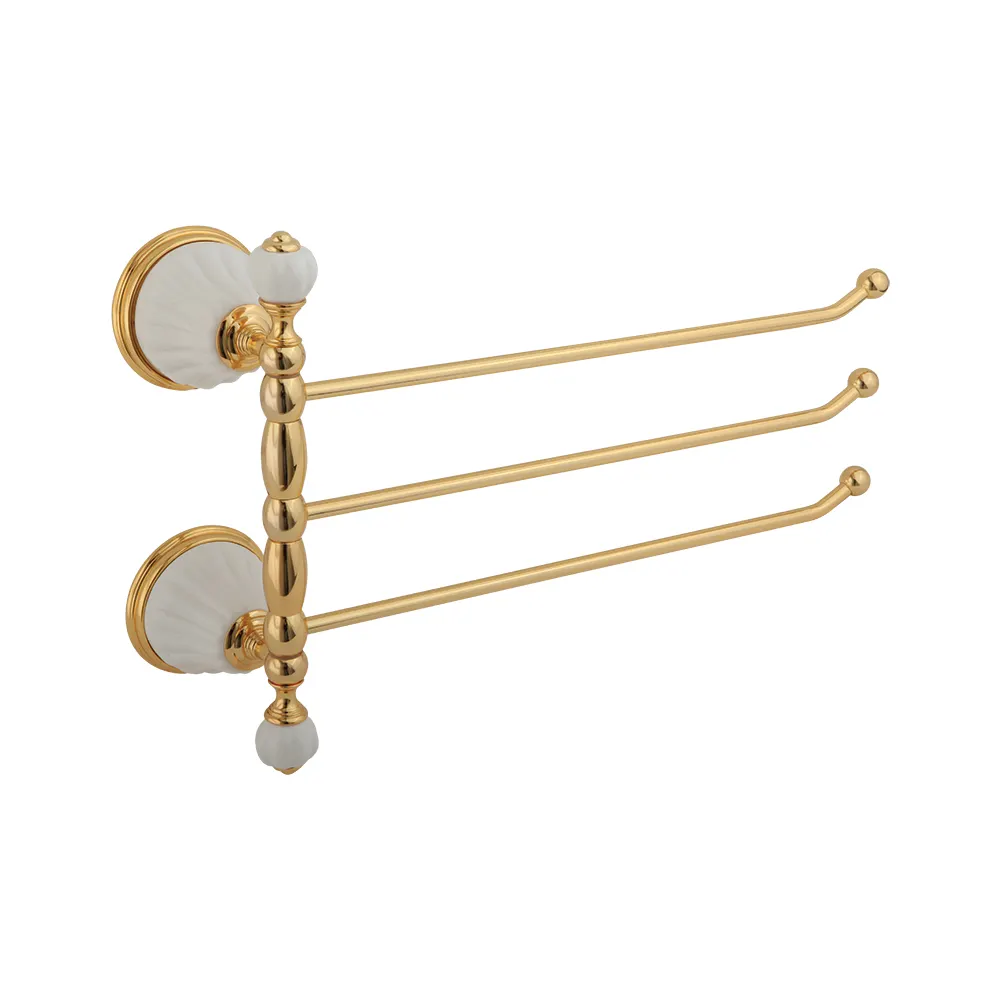 OLIVIA Полотенцедержатель тройной поворотный, L37 cм, керамика белая, золото арт-17467