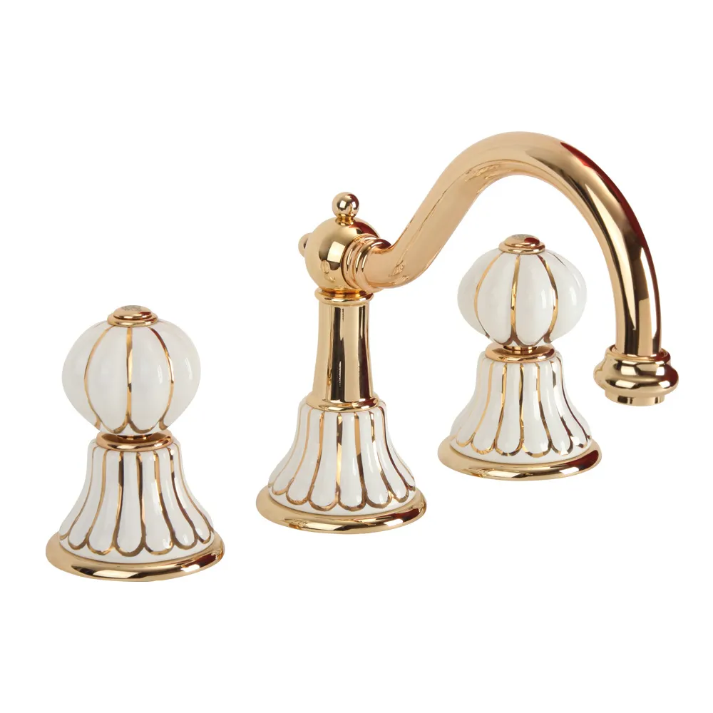 OLIVIA См-ль д/раковины, на 3 отв. излив "змейка", дон.клап."click-clack", бел.с золот.декором/золот арт-19031