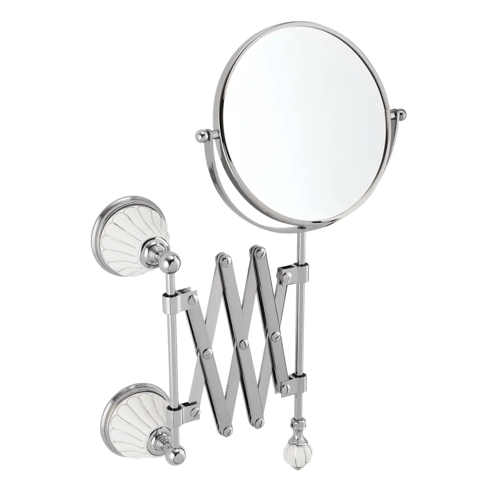 OLIVIA Зеркало оптическое настенное пантограф, L23-63 см. керамика белая с декором платина, хром арт-17552