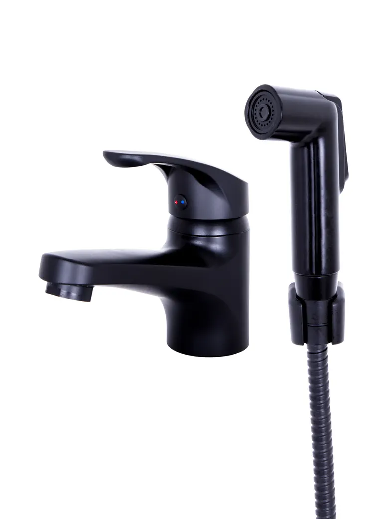 OneLife смеситель для раковины однорычажный полимерный с гигиеническим набором, черный арт-P01-022b