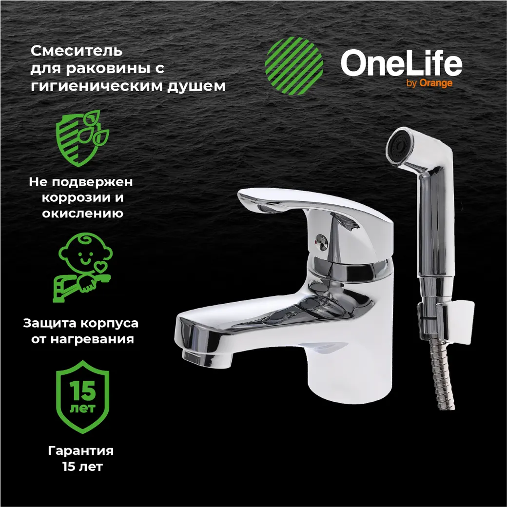 OneLife смеситель для раковины однорычажный полимерный с гигиеническим набором, хром арт-P01-022cr