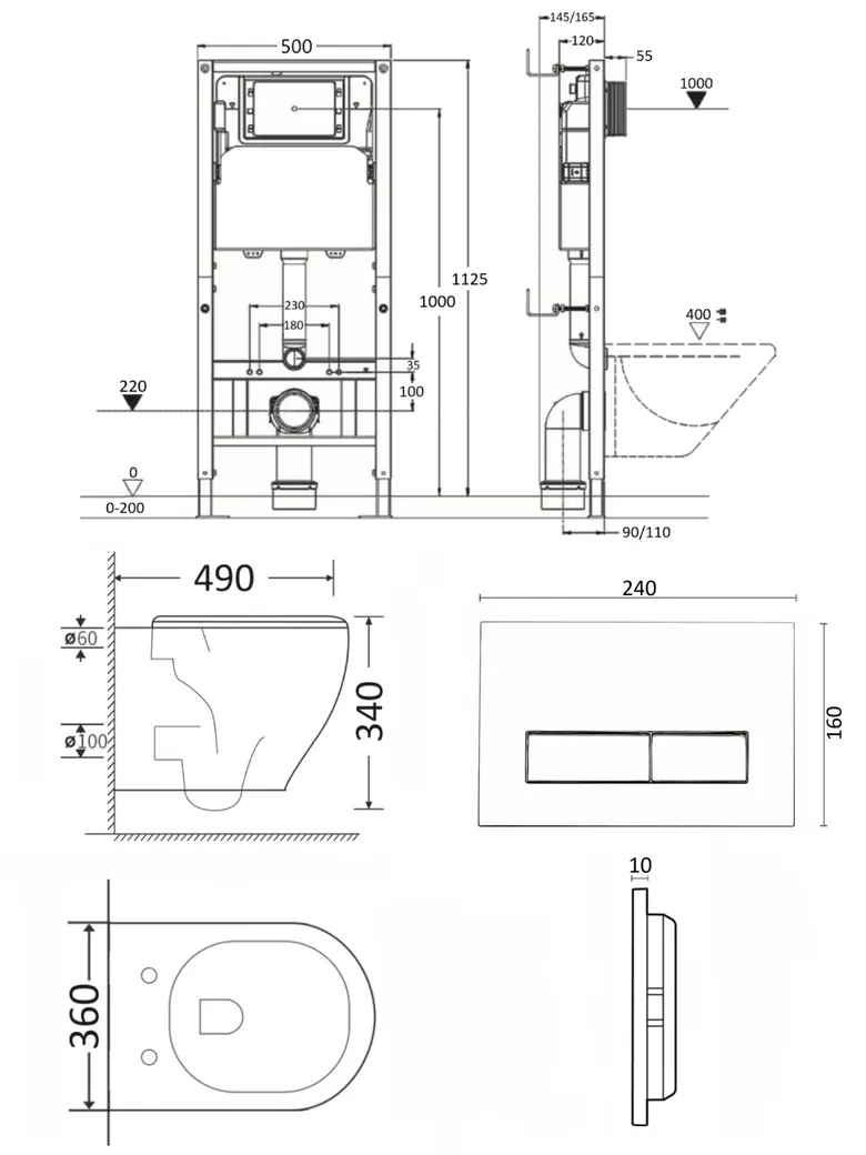Подвесной безободковый унитаз с инсталляцией и кнопкой смыва от немецкого бренда Orange - функциональное и эргономичное решение. Материал унитаза санфарфор отличается беспористой структурой, высокой прочностью и стойкостью к появлению пятен, что позволит сохранить первоначальный вид изделия на долгие годы использования, гарантия от производителя 25 лет. Обтекаемая форма корпуса не позволяет скапливаться пыли. Мощный каскадный смыв - подарит комфорт при эксплуатации. Безободковая модель - отсутствие недоступных областей для уборки обеспечит простой уход и отсутствие посторонних запахов. В комплекте быстросъемная крышка-сиденье с функцией плавного закрывания Soft-close, сиденье изготовлено из прочного материала - дюропласта, петли крышки-сиденья из нержавеющей стали. Скрытая система монтажа, цвет глянцевый белый. Инсталляция обеспечит минимальный уровень шума и максимальный уровень комфорта при эксплуатации. В комплект входят все необходимые крепления. Максимально допустимая нагрузка 400 кг. Объем смыва 3 и 6 литра позволяет экономить воду, снижая ее расход. Ширина рамы - 500 мм, глубина - 145/165 мм, высота - 1125/1325 мм. Материал - сталь. Кнопка смыва с механическим управлением отличается современным дизайном и гармонично дополнит интерьер. Выполнена в цвете глянцевый белый. Форма кнопок - прямоугольная, материал - пластик. Гарантия: 25 лет - унитаз, 10 лет - инсталляция, 2 года - кнопка смыва.