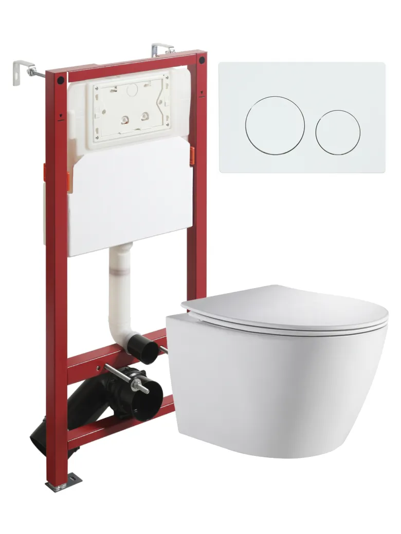 Orange Унитаз подвесной безободковый белый с инсталляцией, микролифт, кнопка смыва белая арт-CI07-150W+APB188