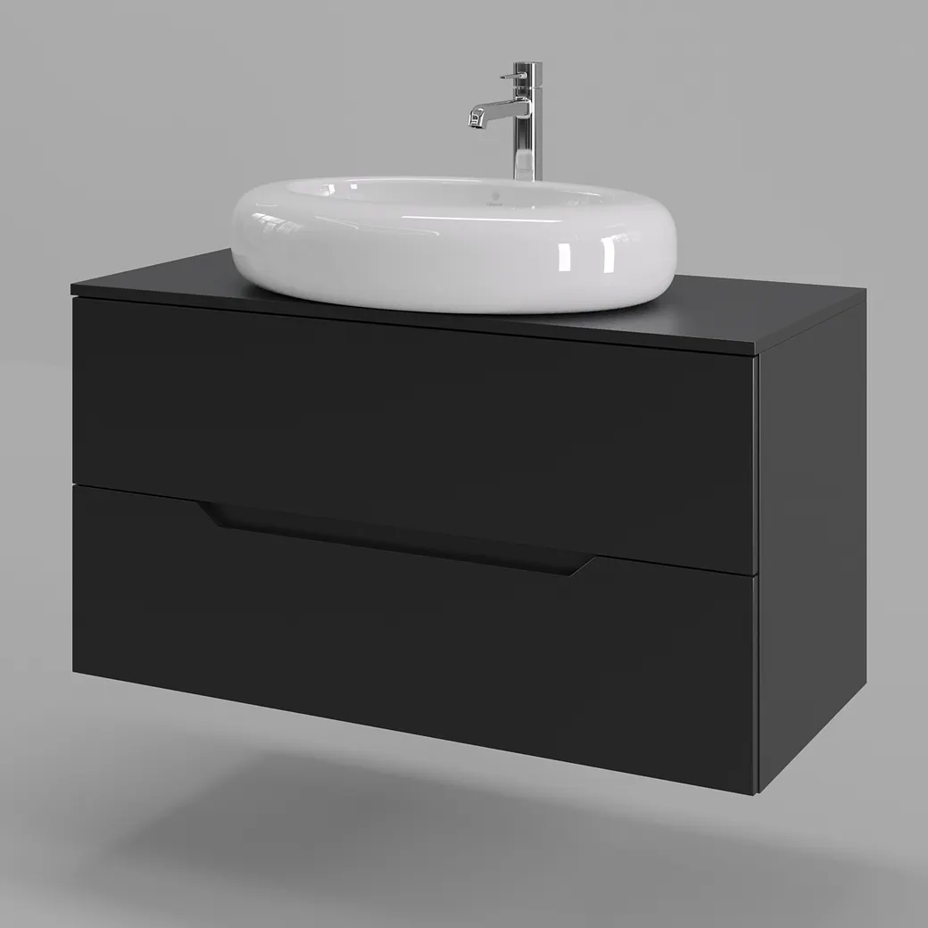 Тумба подвесная с накладной раковиной Orange Line отличается современным дизайном. Изготовлена из МДФ высокой плотности. Мебель покрыта пленкой ПВХ с технологией Soft Touch — ламинация класса премиум, с повышенными тактильными свойствами. Пленка обеспечивает дополнительную защиту мебели от влаги и перепадов температуры. На ящики установлены комплекты скрытых направляющих Hettich, обеспечивающие полное выдвижение и имеющие встроенную систему плавного и бесшумного закрывания. Исполнение - матовое. Материал раковины - фарфор. Отверстия в столешнице под раковину и смеситель монтируются самостоятельно.