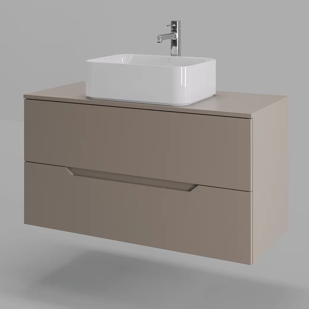 Тумба подвесная с накладной раковиной Orange Line отличается современным дизайном. Изготовлена из МДФ высокой плотности. Мебель покрыта пленкой ПВХ с технологией Soft Touch — ламинация класса премиум, с повышенными тактильными свойствами. Пленка обеспечивает дополнительную защиту мебели от влаги и перепадов температуры. На ящики установлены комплекты скрытых направляющих Hettich, обеспечивающие полное выдвижение и имеющие встроенную систему плавного и бесшумного закрывания. Исполнение - матовое. Материал раковины - фарфор. Отверстия в столешнице под раковину и смеситель монтируются самостоятельно.
