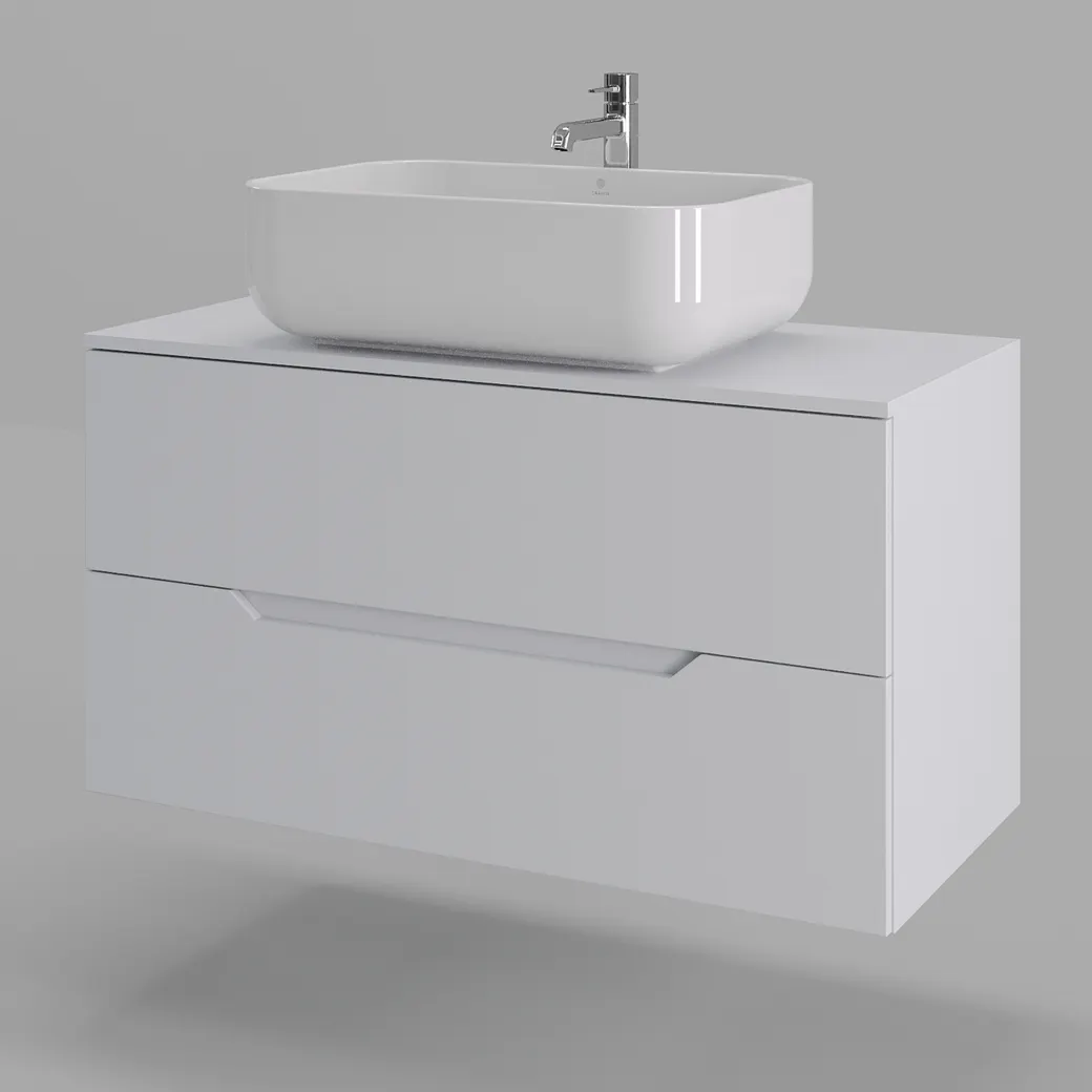 Тумба подвесная с накладной раковиной Orange Line отличается современным дизайном. Изготовлена из МДФ высокой плотности. Мебель покрыта пленкой ПВХ с технологией Soft Touch — ламинация класса премиум, с повышенными тактильными свойствами. Пленка обеспечивает дополнительную защиту мебели от влаги и перепадов температуры. На ящики установлены комплекты скрытых направляющих Hettich, обеспечивающие полное выдвижение и имеющие встроенную систему плавного и бесшумного закрывания. Исполнение - матовое. Материал раковины - фарфор. Отверстия в столешнице под раковину и смеситель монтируются самостоятельно.
