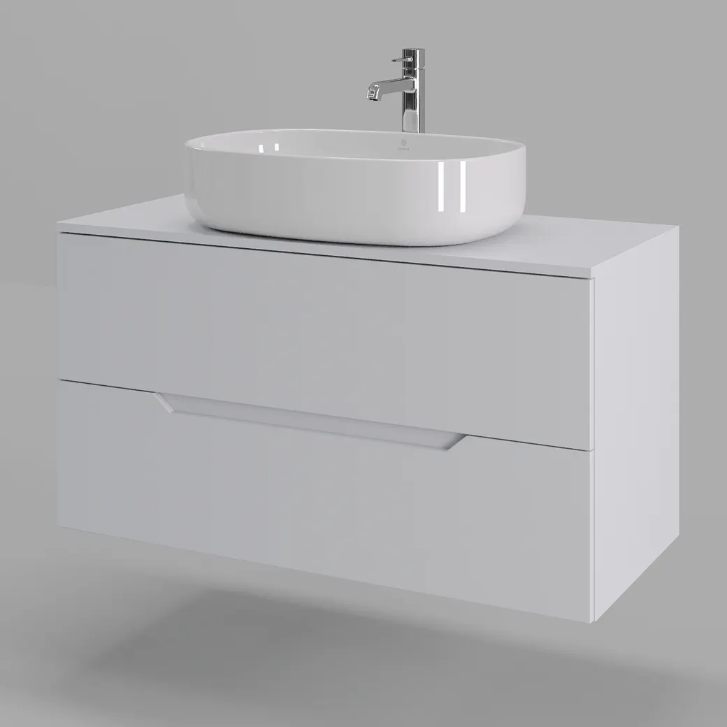 Тумба подвесная с накладной раковиной Orange Line отличается современным дизайном. Изготовлена из МДФ высокой плотности. Мебель покрыта пленкой ПВХ с технологией Soft Touch — ламинация класса премиум, с повышенными тактильными свойствами. Пленка обеспечивает дополнительную защиту мебели от влаги и перепадов температуры. На ящики установлены комплекты скрытых направляющих Hettich, обеспечивающие полное выдвижение и имеющие встроенную систему плавного и бесшумного закрывания. Исполнение - матовое. Материал раковины - фарфор. Отверстия в столешнице под раковину и смеситель монтируются самостоятельно.
