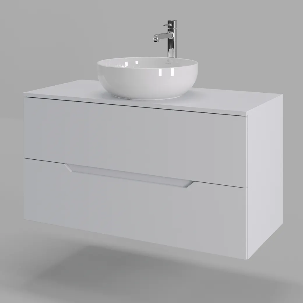 Тумба подвесная с накладной раковиной Orange Line отличается современным дизайном. Изготовлена из МДФ высокой плотности. Мебель покрыта пленкой ПВХ с технологией Soft Touch — ламинация класса премиум, с повышенными тактильными свойствами. Пленка обеспечивает дополнительную защиту мебели от влаги и перепадов температуры. На ящики установлены комплекты скрытых направляющих Hettich, обеспечивающие полное выдвижение и имеющие встроенную систему плавного и бесшумного закрывания. Исполнение - матовое. Материал раковины - фарфор. Отверстия в столешнице под раковину и смеситель монтируются самостоятельно.