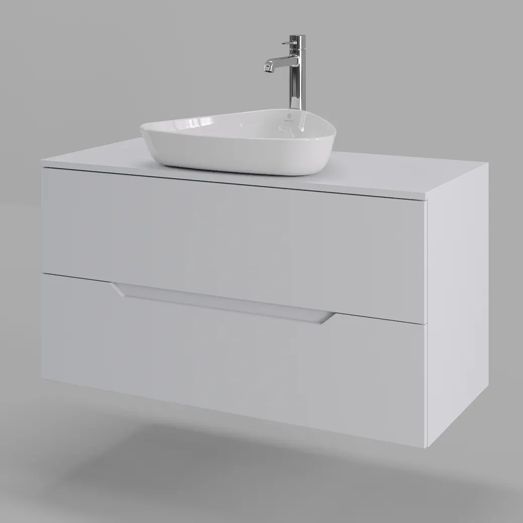Тумба подвесная с накладной раковиной Orange Line отличается современным дизайном. Изготовлена из МДФ высокой плотности. Мебель покрыта пленкой ПВХ с технологией Soft Touch — ламинация класса премиум, с повышенными тактильными свойствами. Пленка обеспечивает дополнительную защиту мебели от влаги и перепадов температуры. На ящики установлены комплекты скрытых направляющих Hettich, обеспечивающие полное выдвижение и имеющие встроенную систему плавного и бесшумного закрывания. Исполнение - матовое. Материал раковины - фарфор. Отверстия в столешнице под раковину и смеситель монтируются самостоятельно.