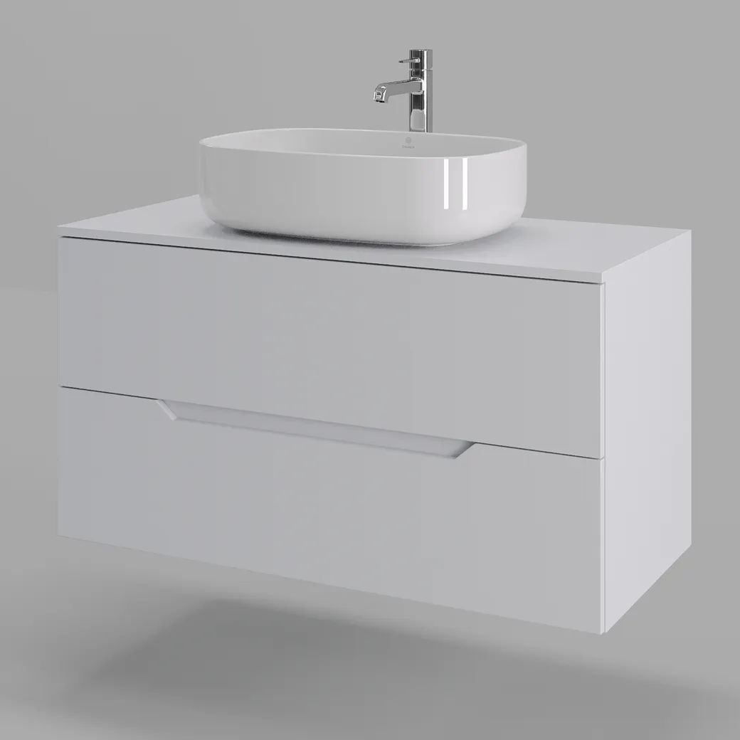 Тумба подвесная с накладной раковиной Orange Line отличается современным дизайном. Изготовлена из МДФ высокой плотности. Мебель покрыта пленкой ПВХ с технологией Soft Touch — ламинация класса премиум, с повышенными тактильными свойствами. Пленка обеспечивает дополнительную защиту мебели от влаги и перепадов температуры. На ящики установлены комплекты скрытых направляющих Hettich, обеспечивающие полное выдвижение и имеющие встроенную систему плавного и бесшумного закрывания. Исполнение - матовое. Материал раковины - фарфор. Отверстия в столешнице под раковину и смеситель монтируются самостоятельно.