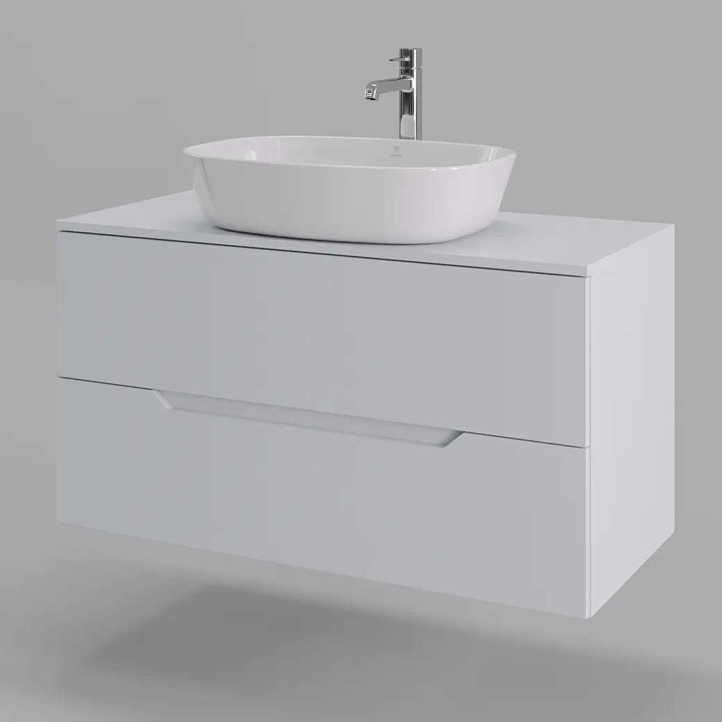 Тумба подвесная с накладной раковиной Orange Line отличается современным дизайном. Изготовлена из МДФ высокой плотности. Мебель покрыта пленкой ПВХ с технологией Soft Touch — ламинация класса премиум, с повышенными тактильными свойствами. Пленка обеспечивает дополнительную защиту мебели от влаги и перепадов температуры. На ящики установлены комплекты скрытых направляющих Hettich, обеспечивающие полное выдвижение и имеющие встроенную систему плавного и бесшумного закрывания. Исполнение - матовое. Материал раковины - фарфор. Отверстия в столешнице под раковину и смеситель монтируются самостоятельно.
